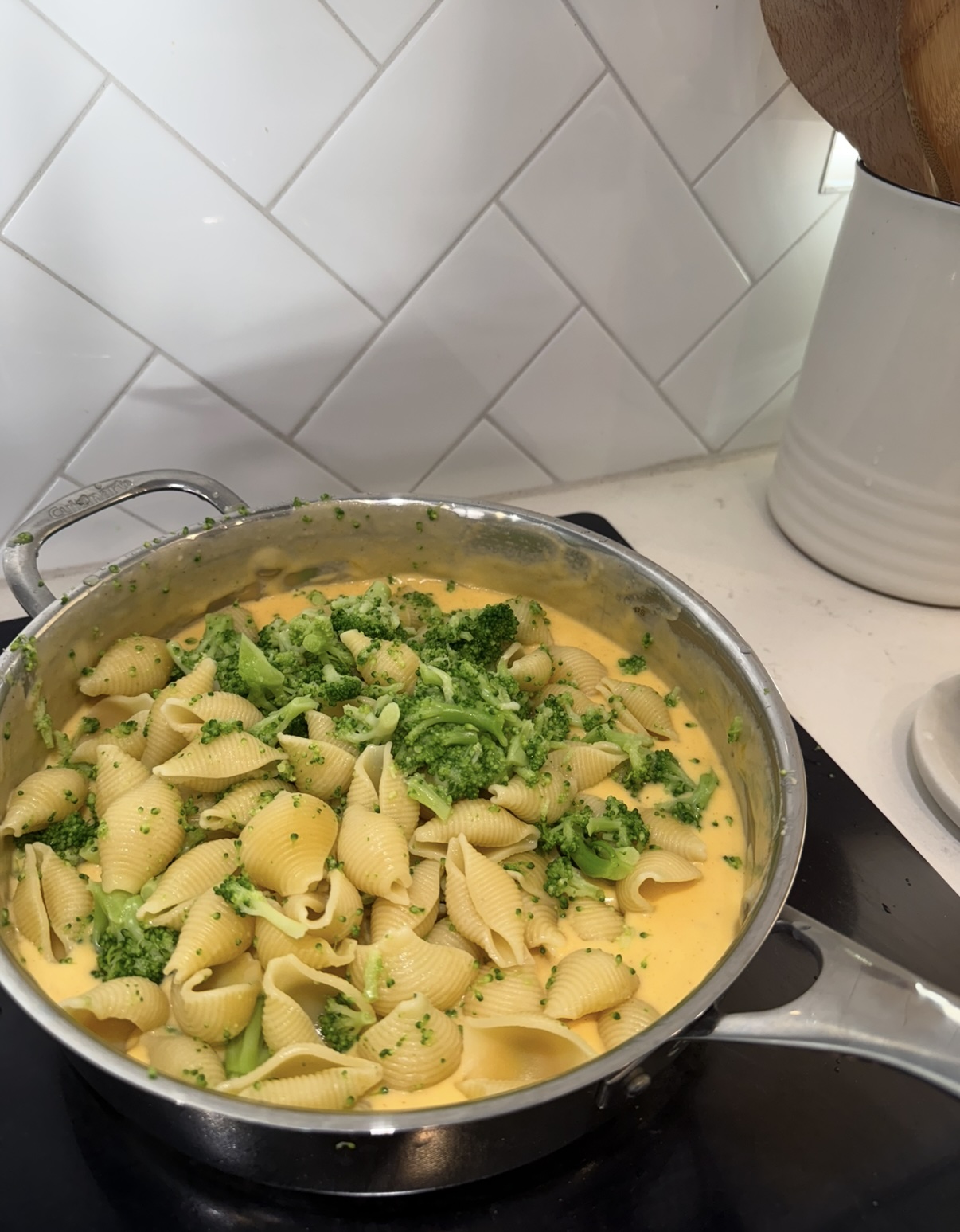 6. Fold in the cooked pasta and broccoli until evenly coated. If needed, add a splash of warm milk to loosen the sauce. Serve immediately. Enjoy!