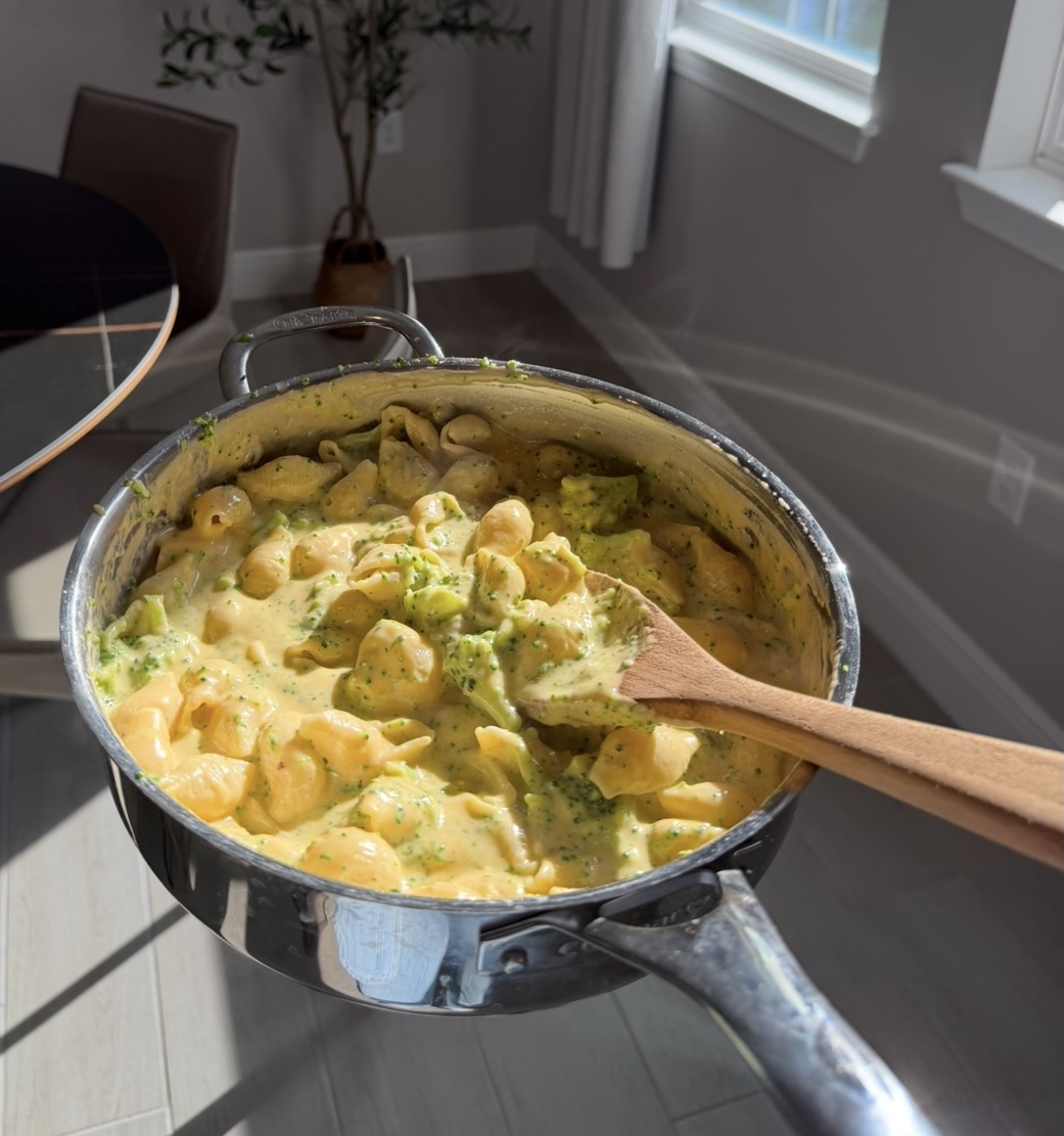 Like most Mac & cheese recipes, this recipe uses a classic roux-based cheese sauce for the smoothest texture and richest flavor. Sharp cheddar keeps things comforting, while broccoli adds a pop of color and balance that makes this dish feel just a little more wholesome.